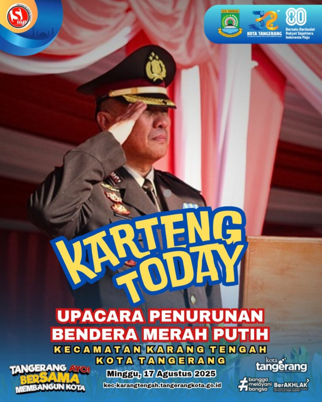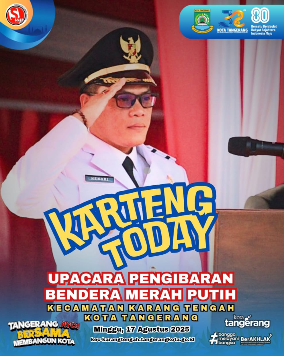 26 Oct 2025 04:30 BENTENG RUN FESTIVAL COLOUR FUN 2025 Read More 17 Aug 2025 07:00 UPACARA PENGIBARAN BENDERA MERAH PUTIH DALAM RANGKA HUT RI 80 Read More 18 Jul 2025 19:30 Pengajian Bulanan MUI Kecamatan Karang Tengah Read More 18 Jul 2025 16:30 HUT RI 80 Read More 26 Jun 2025 16:00 FESTIVAL AL A'ZHOM Read More 16 Nov 2023 10:02 Pembangunan Saluran Air (Drainase) Kelurahan Karang Timur 16 November 2023 Read More