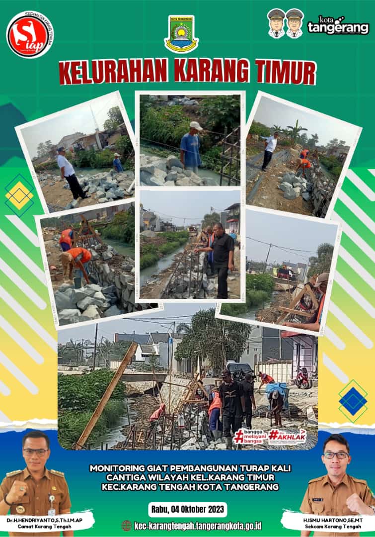 Sekretaris Lurah didampingi staff Kelurahan melakukan monitoring kegiatan terkait pembangunan turap kali cantiga serta drainase di lingkungan RT 02 RW 04 wilayah Kelurahan Karang Timur Kecamatan Karang Tengah Kota Tangerang.