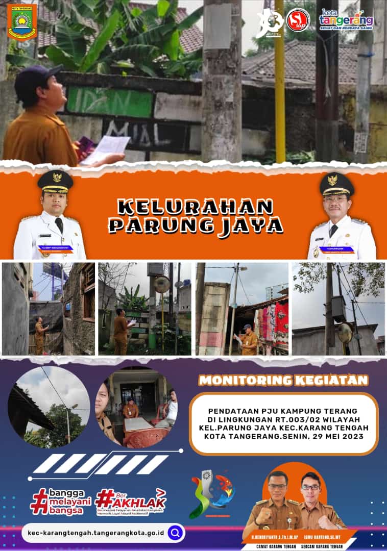 Kasi Ekonomi Pembangunan beserta staff Kelurahan melakukan pendataan terkait data PJU Kampung Terang dalam program Satu Data Kota Tangerang di wilayah lingkungan RT 03 RW 02 Kelurahan Parung Jaya Kecamatan Karang Tengah Kota Tangerang.