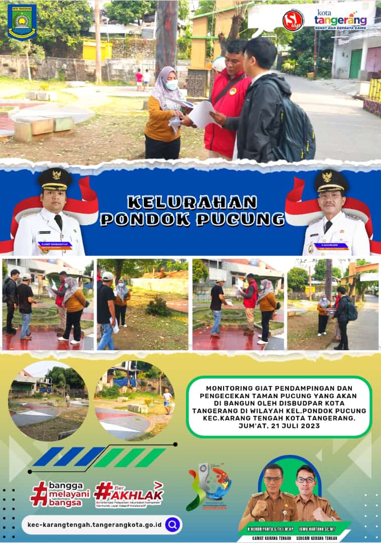 Kasi Kelurahan mendampingi perwakilan Dinas Budaya dan Pariwisata (Disbudpar) Kota Tangerang sekaligus melakukan pengecekan taman pucung yang akan dibangun di wilayah Kelurahan Pondok Pucung Kecamatan Karang Tengah Kota Tangerang.